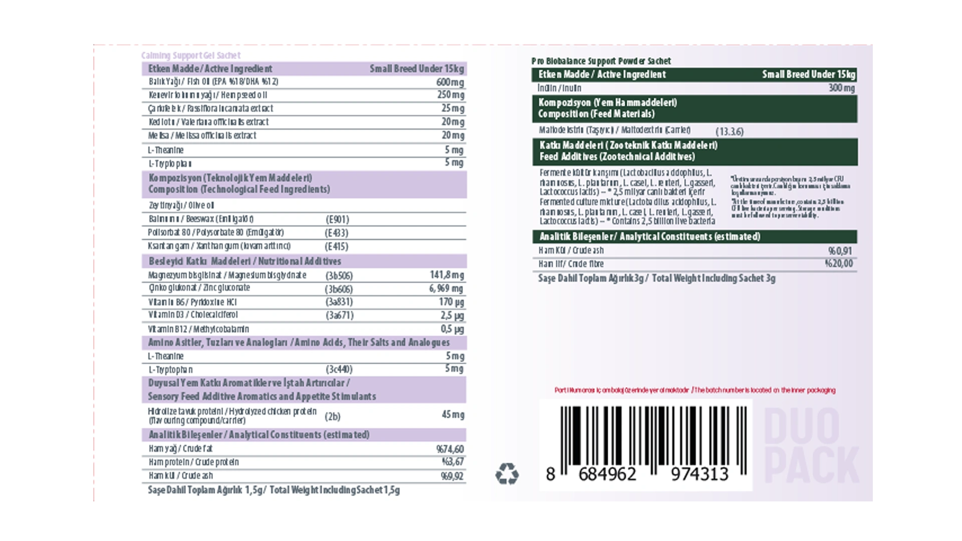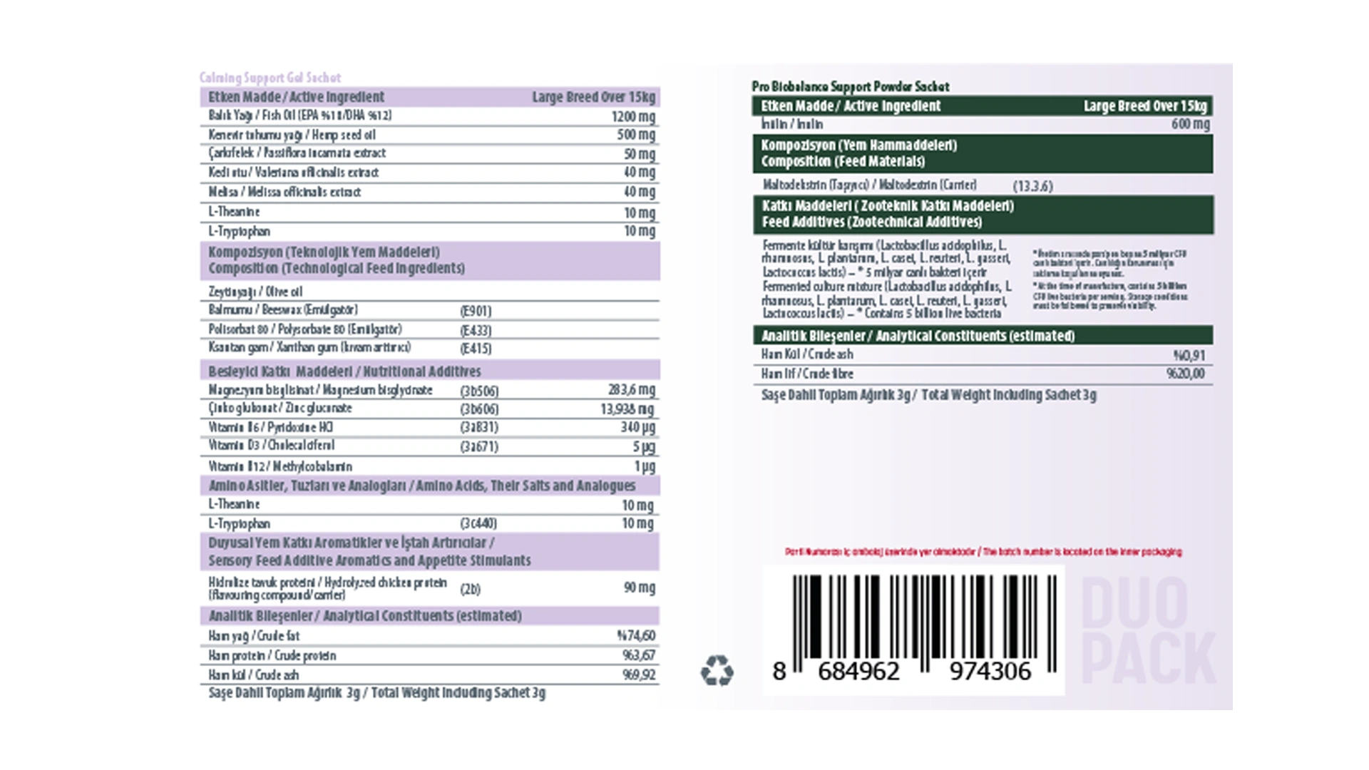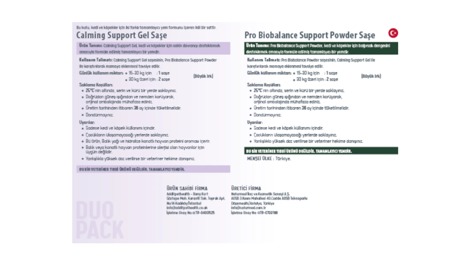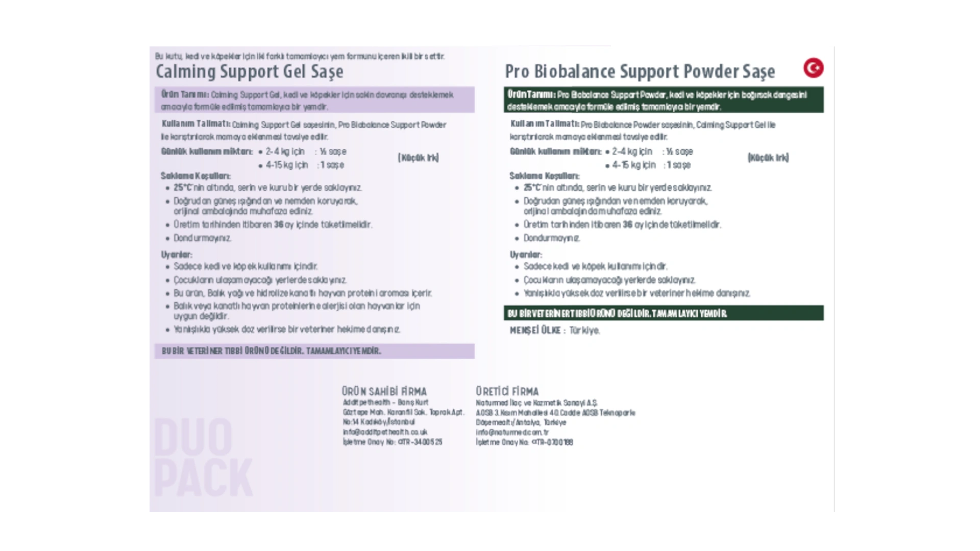Calming Support Duo Pack, kedi ve köpeklerde sakin davranışları desteklemek amacıyla geliştirilmiş tamamlayıcı bir yemdir. Aşağıdaki durumlarda destekleyici olarak kullanılabilir: