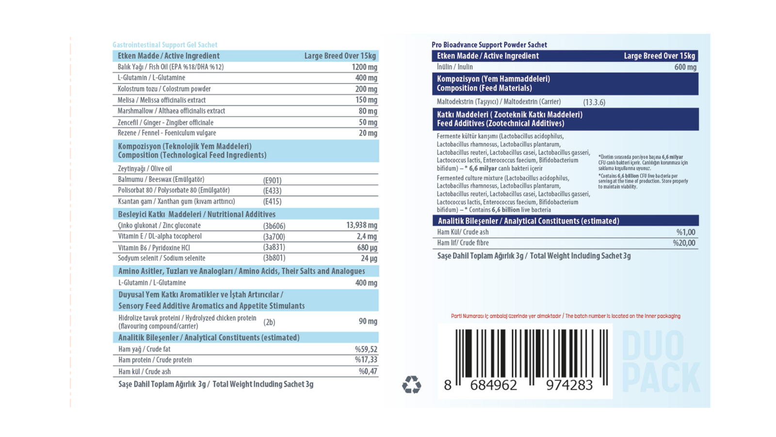 Evet. Günlük önerilen dozlara uyulduğunda uzun süreli kullanım güvenlidir. Özellikle kronik mide–bağırsak hassasiyeti, inflamasyon ve flora bozukluğu olan hayvanlarda veteriner hekiminizle birlikte düzenli kullanım planı yapabilirsiniz.
